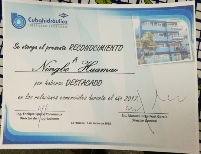 我司榮獲古巴水利優(yōu)秀供應(yīng)商獎