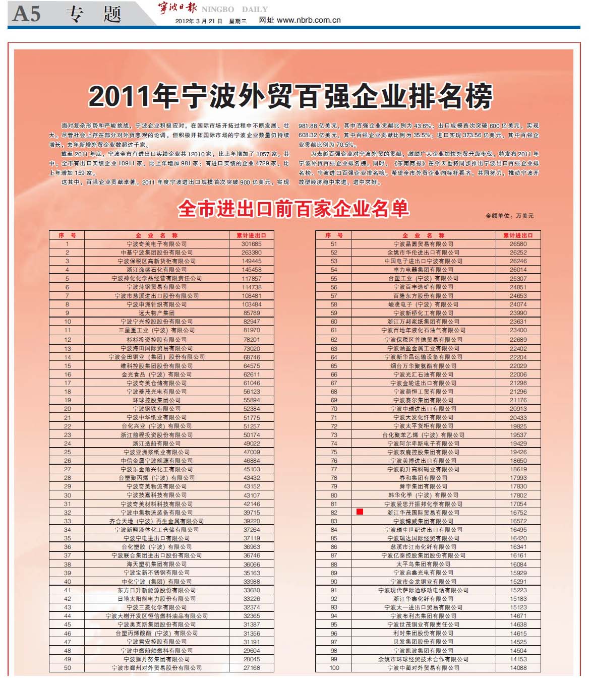 2011年寧波外貿(mào)百強(qiáng)企業(yè)